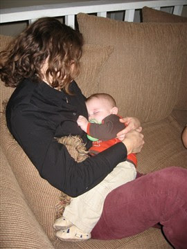 Hudson in front of his first Christmas tree! We dug out a hole in the snow just to try to enable him to sit up, good thing Doug snapped the shot quickly becuase he didn't last for very long sitting up...